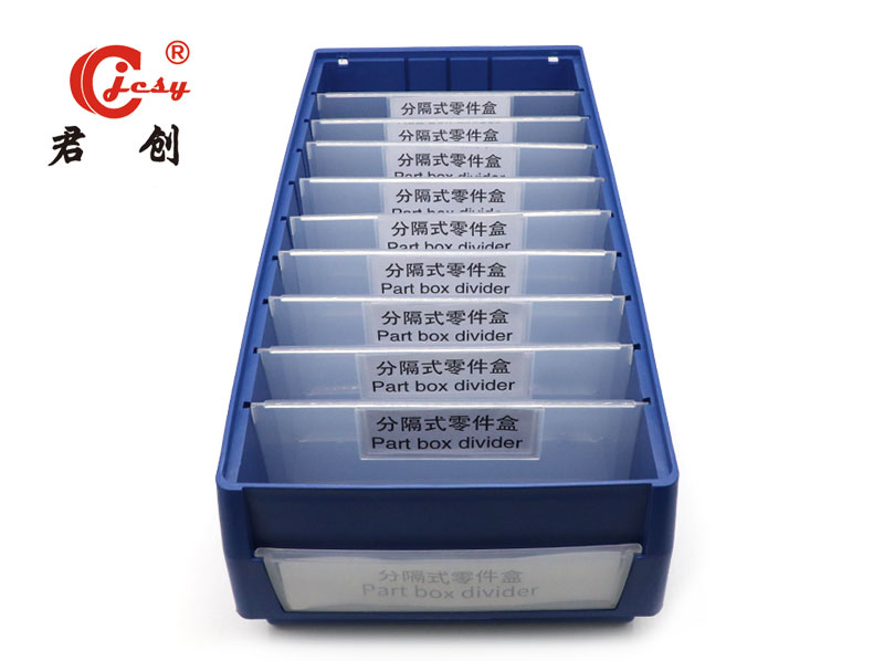 结构上采用半开口式,让内容物一目了然,透明前挡板开、合两个状态能明确显示需不需要补货;不同物料可按照盒子大小选择性存放,相同宽度的盒子可固定存放同种物料,节省辨认时间